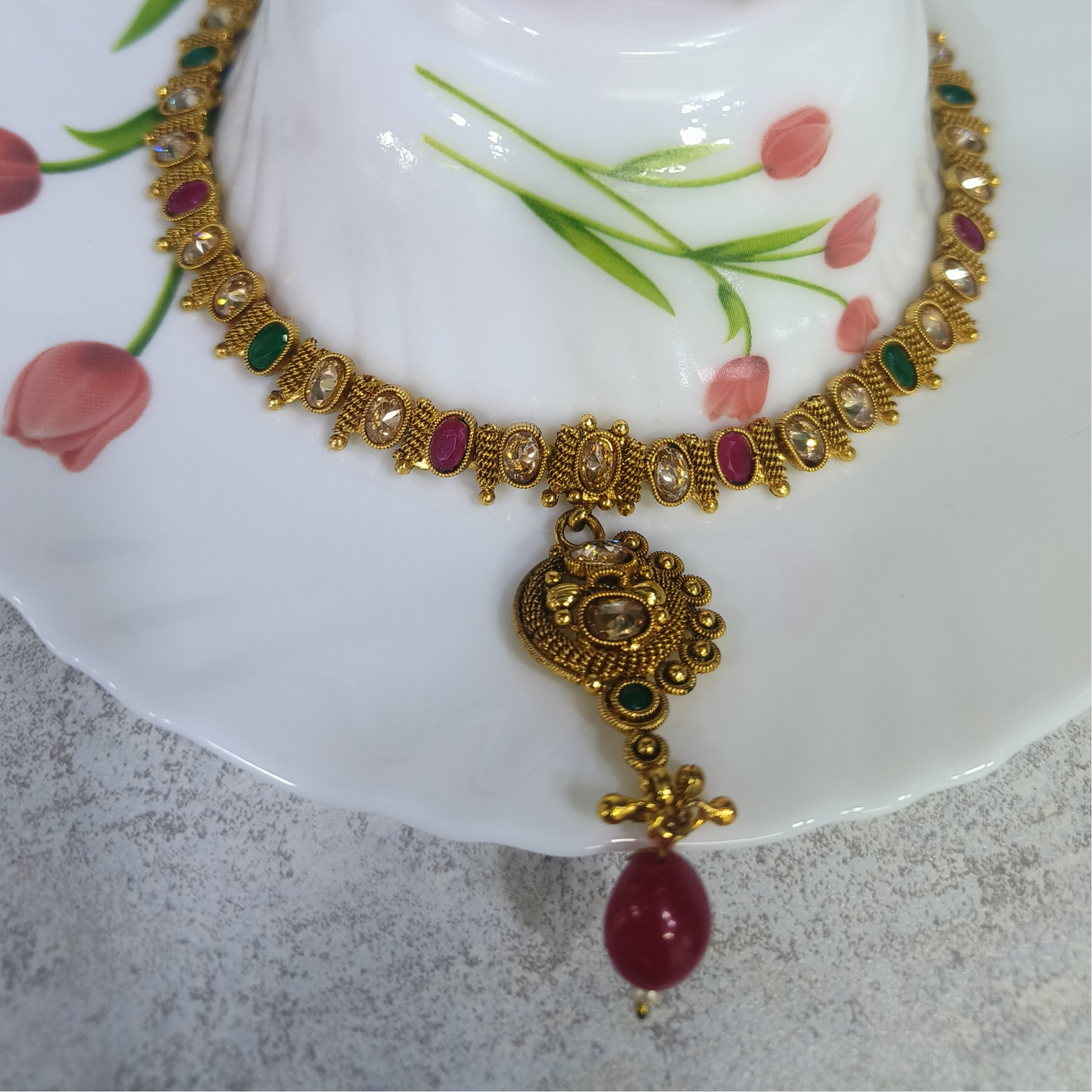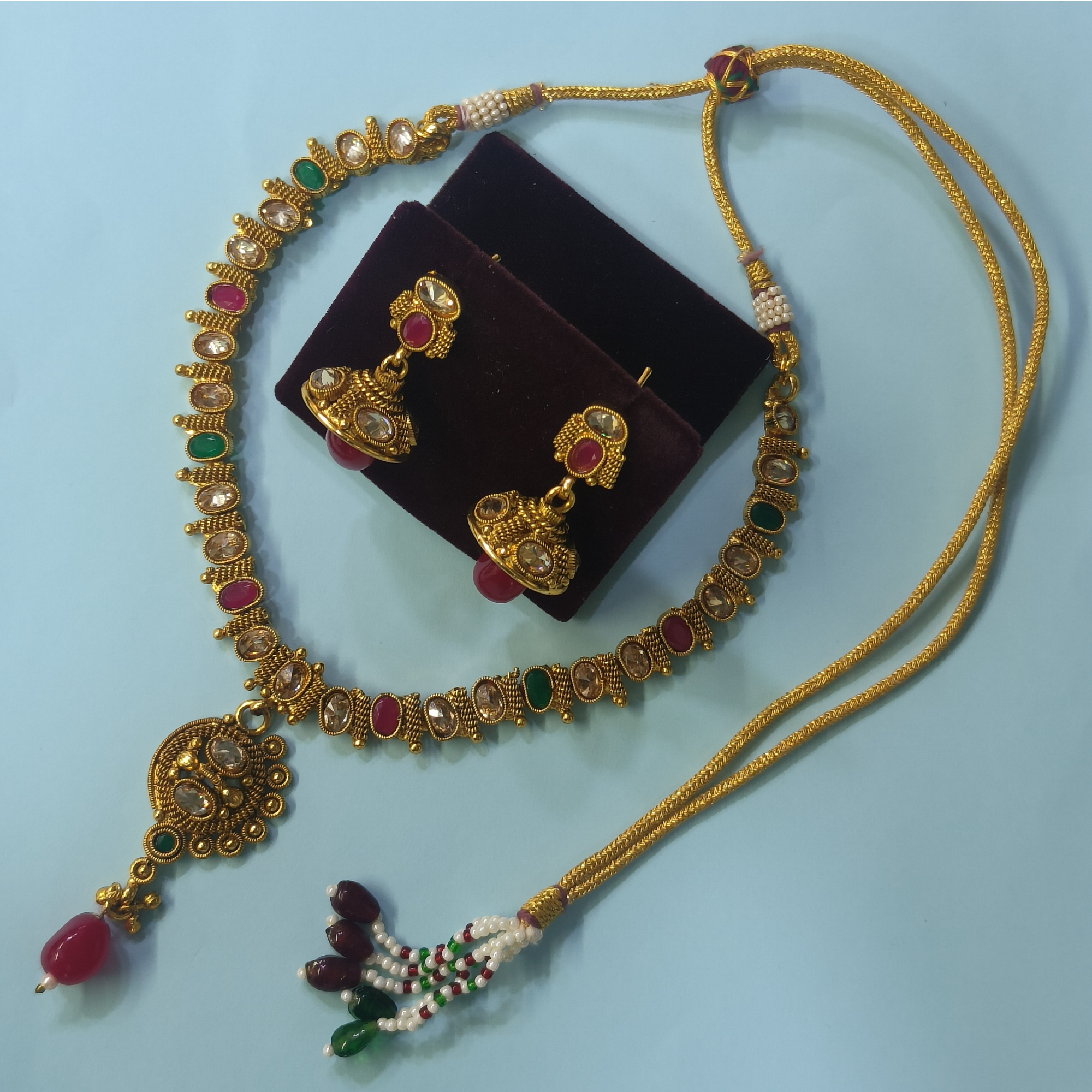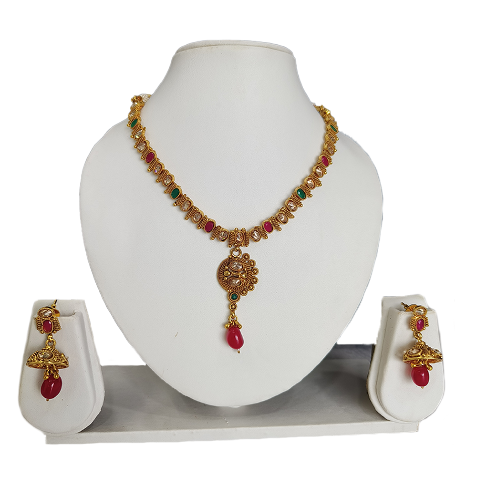 Traditional Kundan Gold Plated Choker Necklace Set for Women will complement any Indian attire. Women Love Jewelry as it not only enhances their beauty, but also gives them the social confidence. Make your moment memorable with this range. This jewel set features a unique one of a kind traditional embellish with antic finish. Earrings are very easy to use being lightweight and has a design which makes it very comfortable